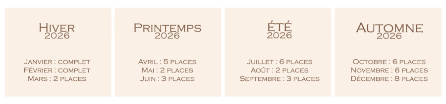 Si vous souhaitez me confier la création de vos souvenirs, voici le planning des disponibilités sur l'année 2026.