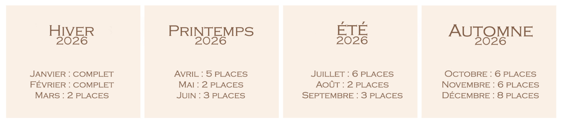 Si vous souhaitez me confier la création de vos souvenirs, voici le planning des disponibilités sur l'année 2026.